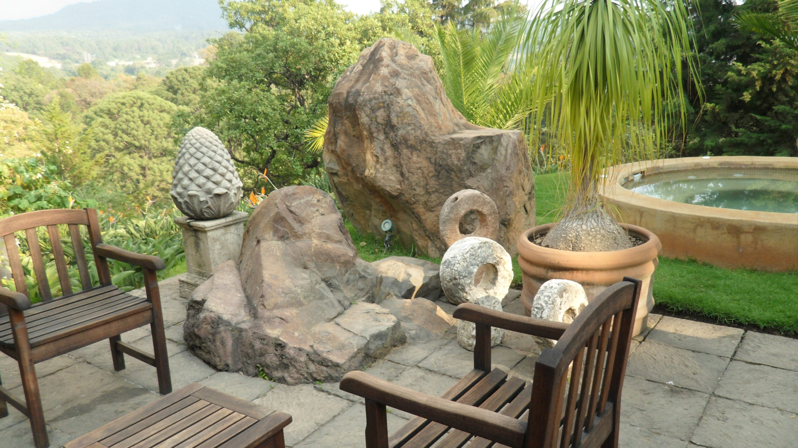 Macetas de barro cuidadosamente dispuestas y plantas que aportan contraste se funden con los muros de piedra, creando un paisaje sereno y vibrante a la vez. Cada mirada descubre texturas, tonalidades y alturas; invita a recorrer, contemplar y dejarse envolver por la magia del rancho.